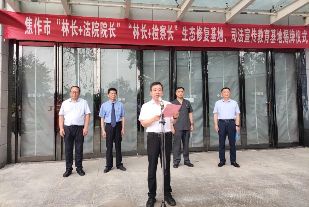 7月20日上午,在国有焦作林场(市森林公园)举行了河南省“林长+法院院长”“林长+检察长”生态修复基地和生态司法宣传教育基地揭牌活动。