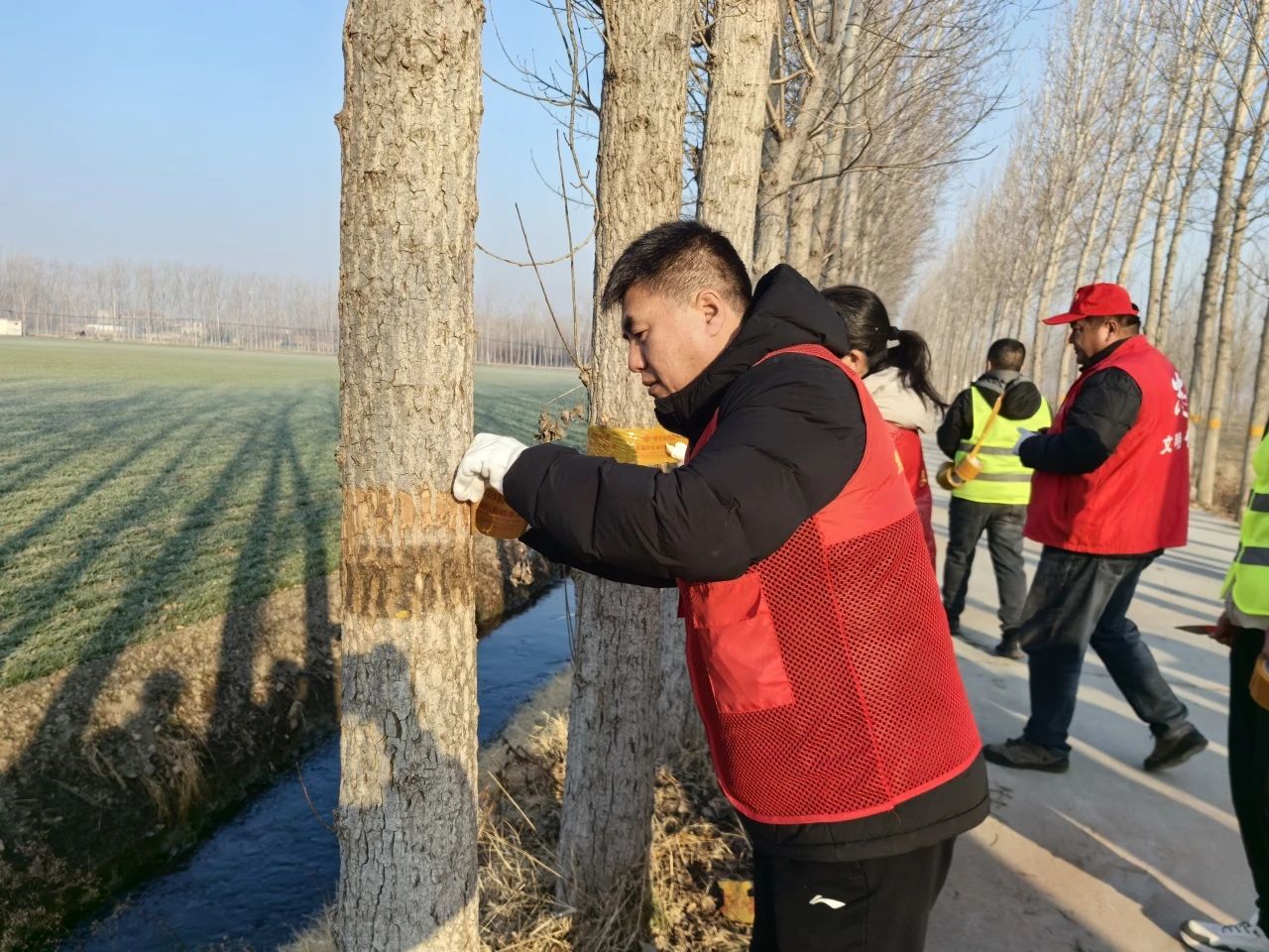 活动现场,市林业工作站站长李济武现场讲解了草履蚧防治技术要点,亲自示范指导了“一刮二缠三涂药”的防治措施。
