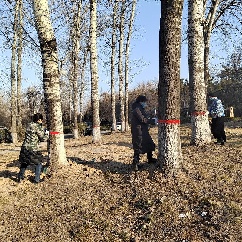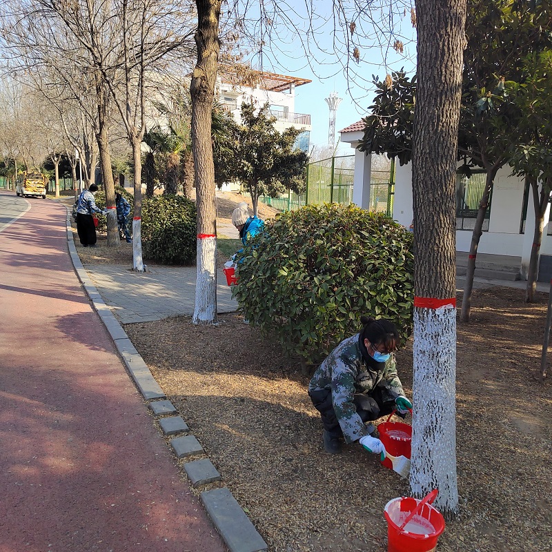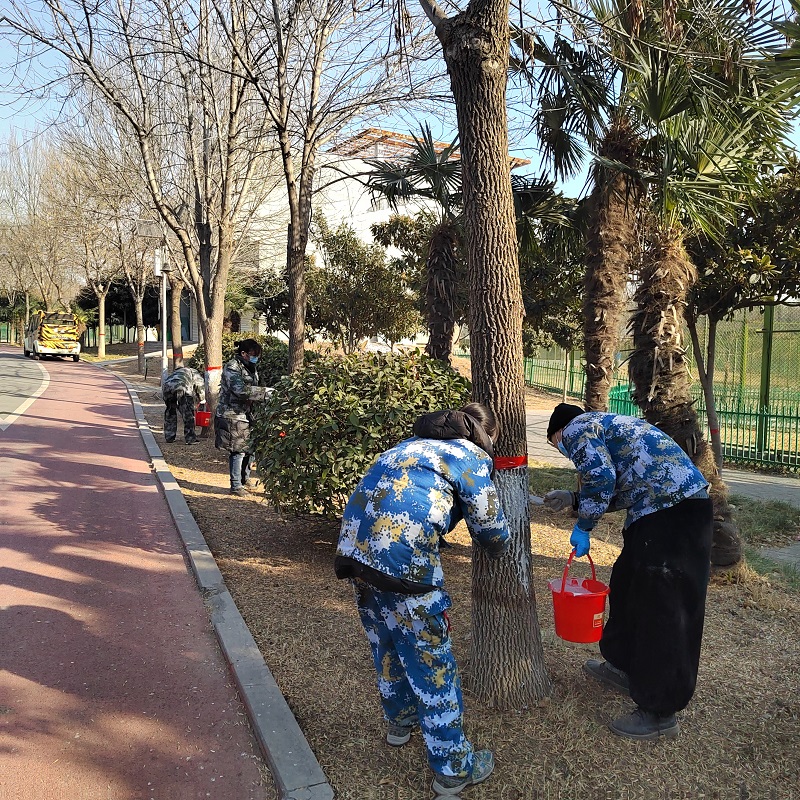 活动中,大家严格按照既定比例调配涂白剂,涂白时做到上口平齐,下不露“脚”,以确保树干涂白的高度保持一致。同时,实施“查漏补缺、强弱补短”的工作方法,全面提升绿化精细化管理水平,针对遗漏或涂白效果不佳的树木,采取整形修剪、树干补刷等措施,有效提升树木抗病、防寒能力的同时,也描绘出了一道整齐美观的风景线。